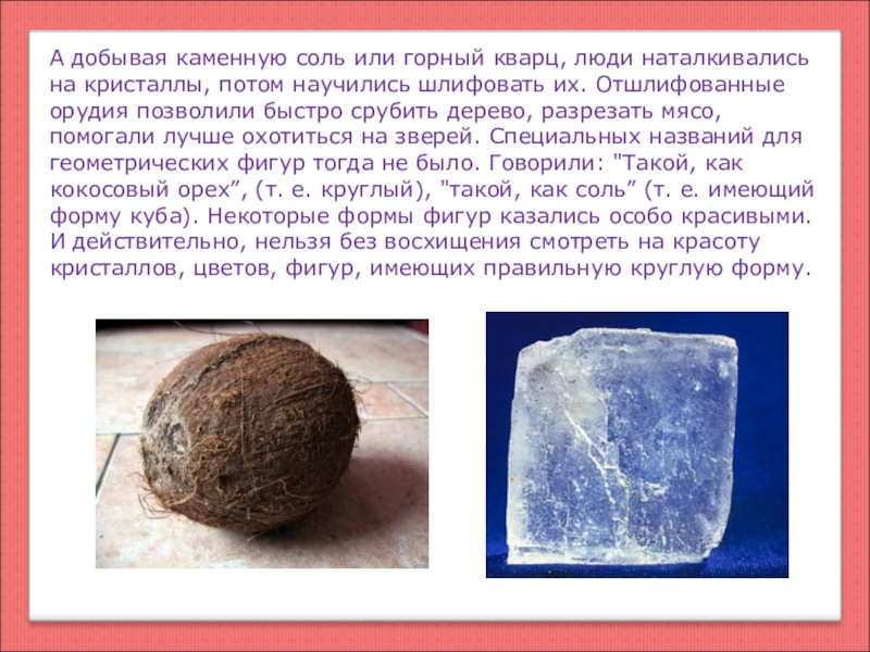 Слайд 6А добывая каменную соль или горный кварц, люди наталкивались на кристаллы,
