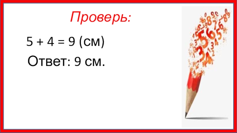 Проверь:   5 + 4 = 9 (см)  Ответ: 9 см.