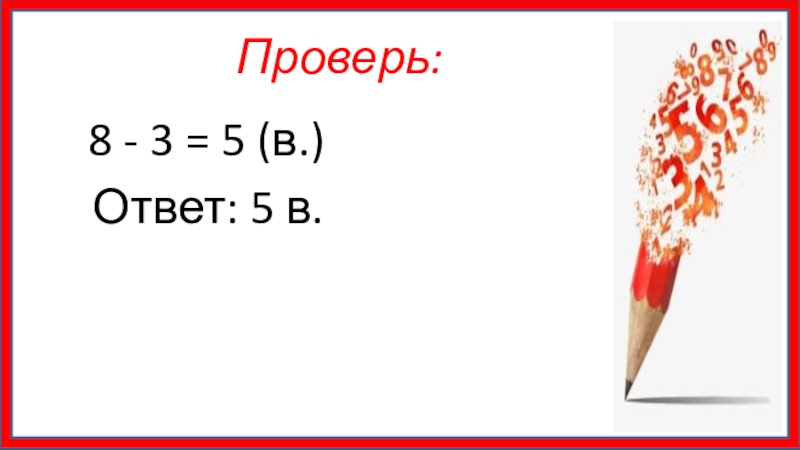 Проверь:   8 - 3 = 5 (в.)  Ответ: 5 в.