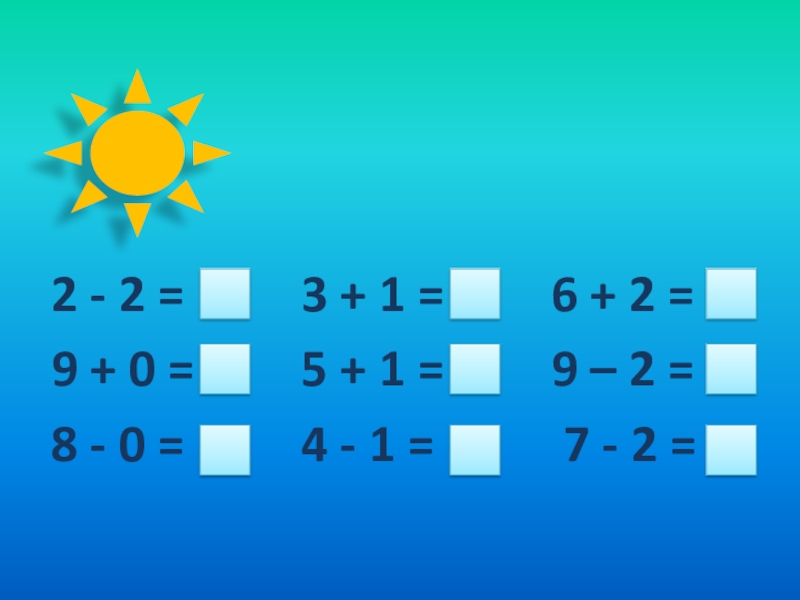 2 - 2 = 9 + 0 = 8 - 0 = 3 + 1 = 5 + 1 = 4 - 1 = 6 + 2 = 9 – 2 = 7 - 2 =