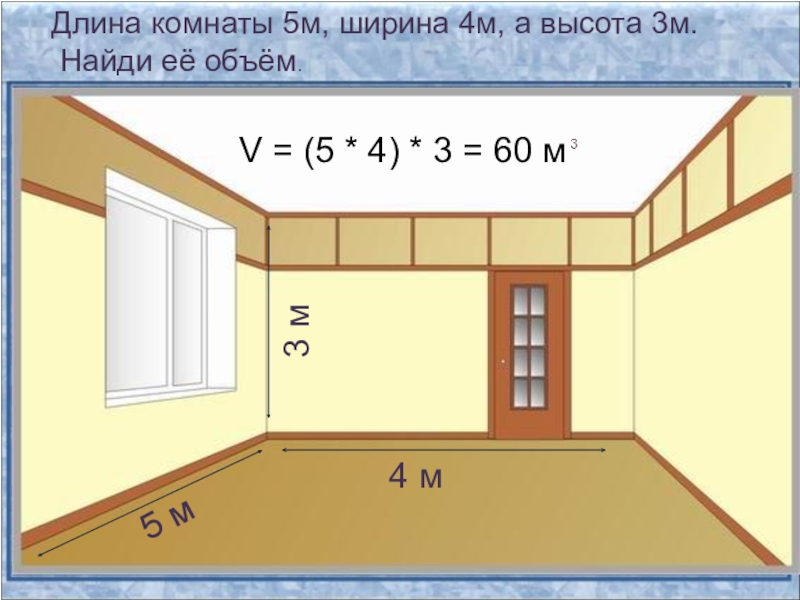V = (3 * 2) * 4 = 24 дм