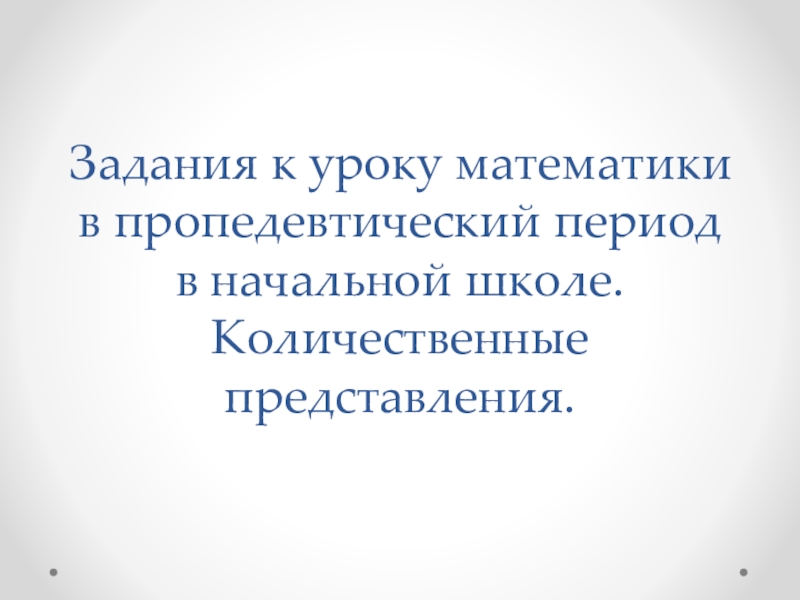 Слайд 1Задания к уроку математики в пропедевтический период в начальной школе. Количественные представления.