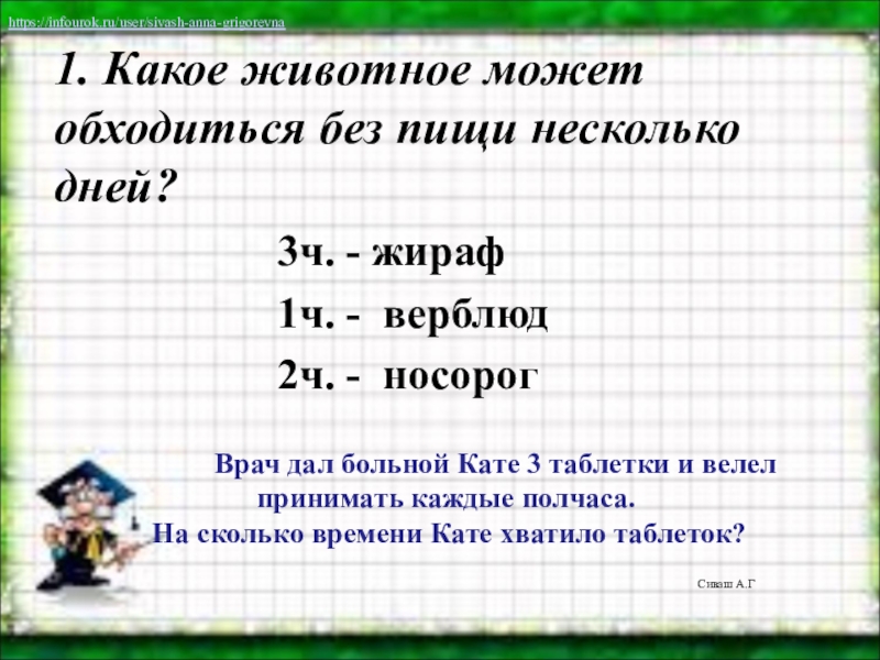 Врач дал больной Кате 3 таблетки и велел принимать каждые полчаса.