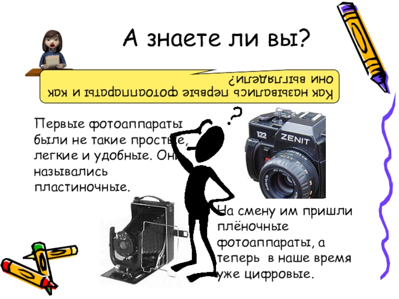 На смену им пришли плёночные фотоаппараты, а теперь в наше время уже цифровые.