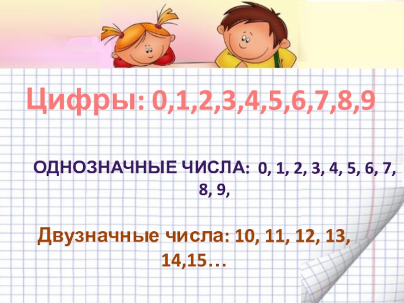 Двузначные числа: 10, 11, 12, 13, 14,15…
