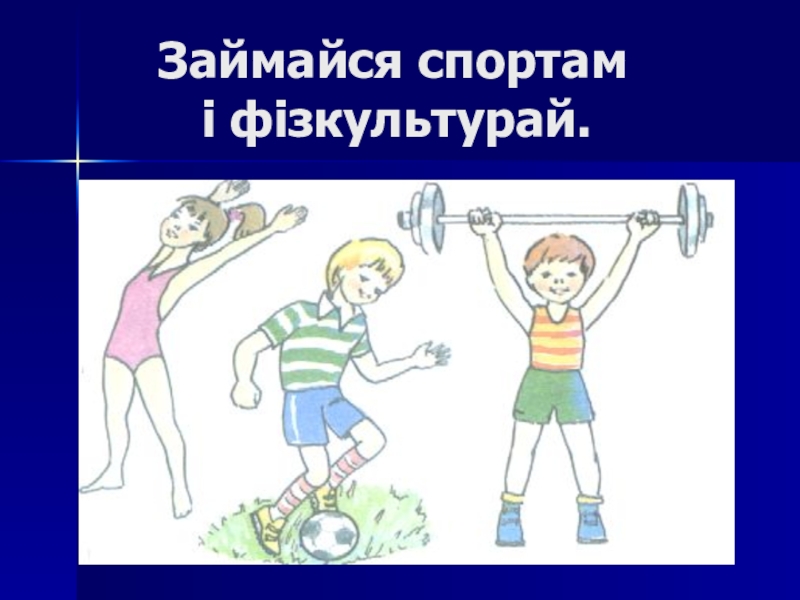 Слайд 13 Займайся спортам і фізкультурай.