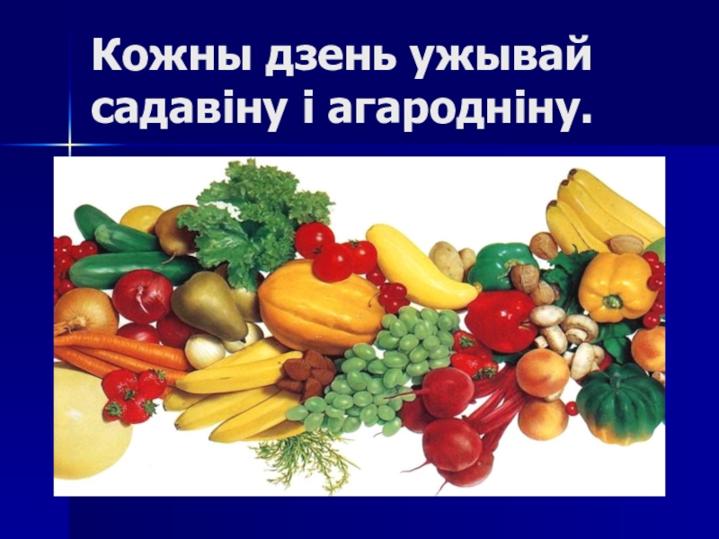 Слайд 6Кожны дзень ужывай садавіну і агародніну.