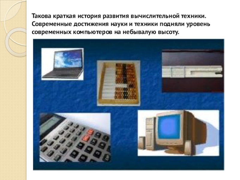 Слайд 10Такова краткая история развития вычислительной техники. Современные достижения науки и техники