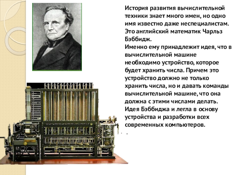 Слайд 6История развития вычислительной техники знает много имен, но одно имя известно