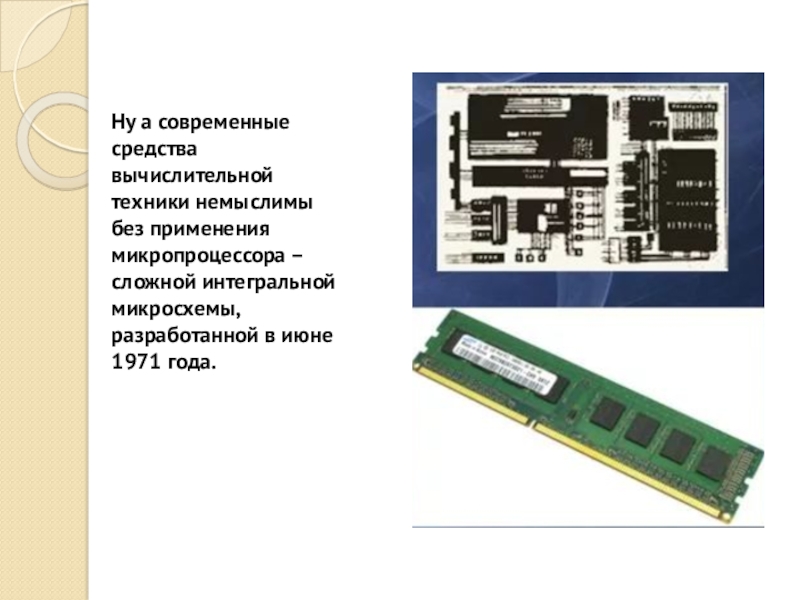 Слайд 9Ну а современные средства вычислительной техники немыслимы без применения микропроцессора –