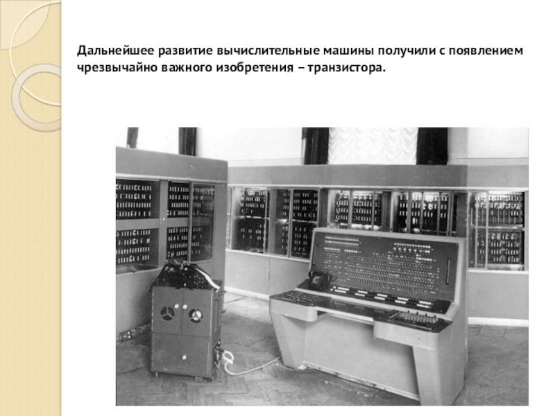 Слайд 8Дальнейшее развитие вычислительные машины получили с появлением чрезвычайно важного изобретения –