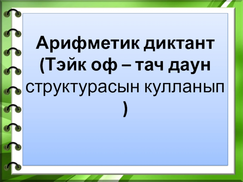 Слайд 2Арифметик диктант (Тэйк оф – тач даун структурасын кулланып )
