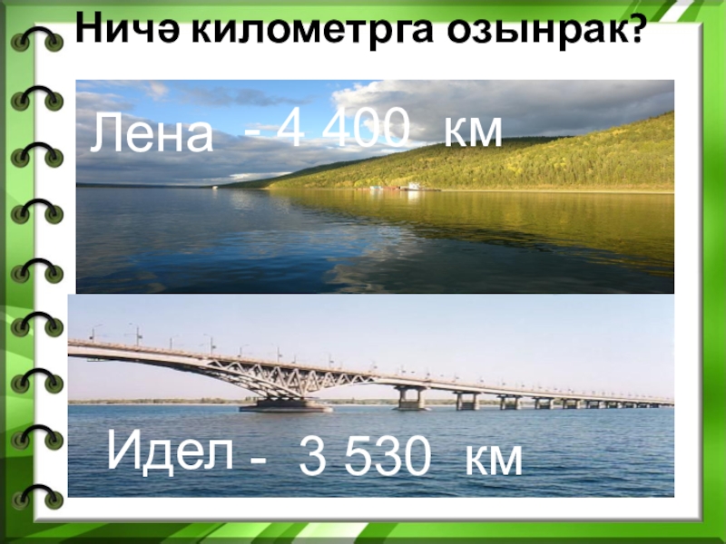 Ничә километрга озынрак? Лена  Идел - 4 400 км - 3 530 км