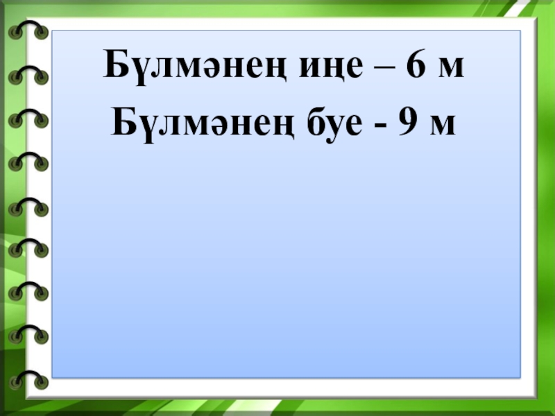 Слайд 10Бүлмәнең иңе – 6 м