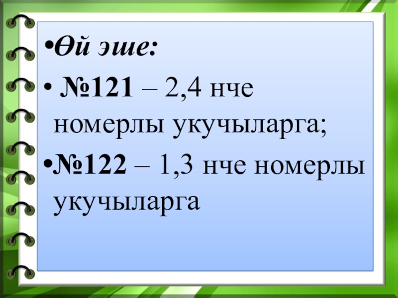 Өй эше: №121 – 2,4 нче номерлы укучыларга;№122 – 1,3 нче номерлы укучыларга