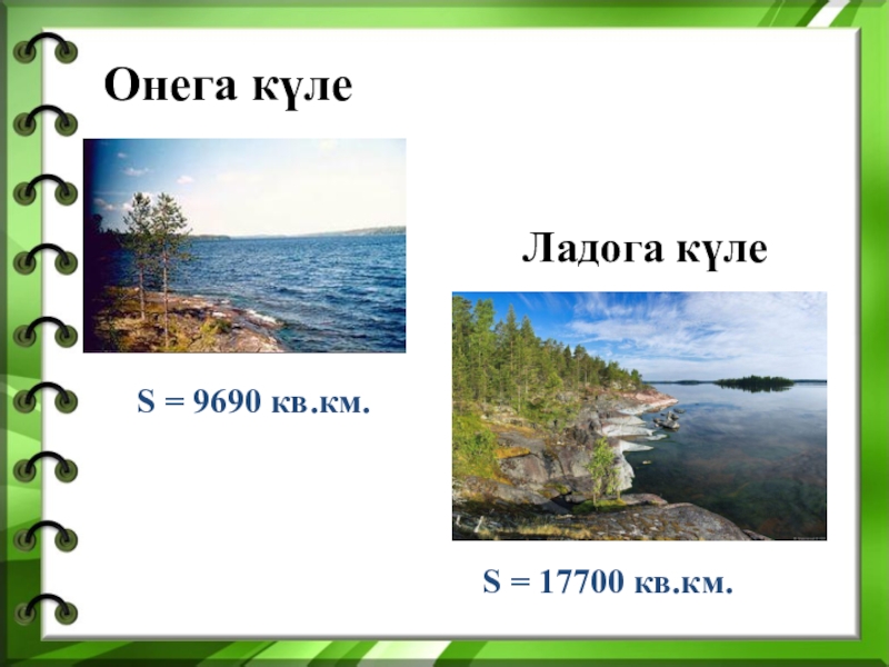 Онега күлеЛадога күле.S = 9690 кв.км.S = 17700 кв.км.