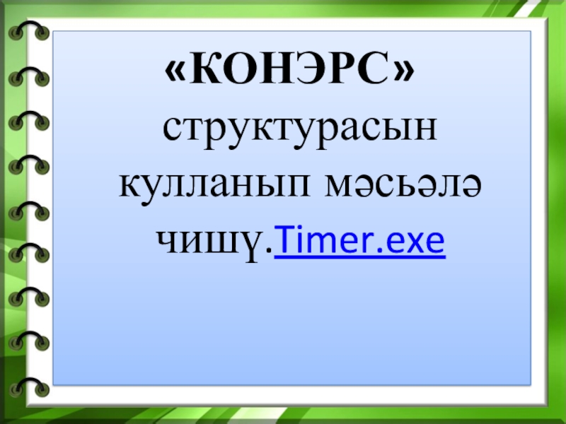 Слайд 14«КОНЭРС» структурасын кулланып мәсьәлә чишү.Timer.exe