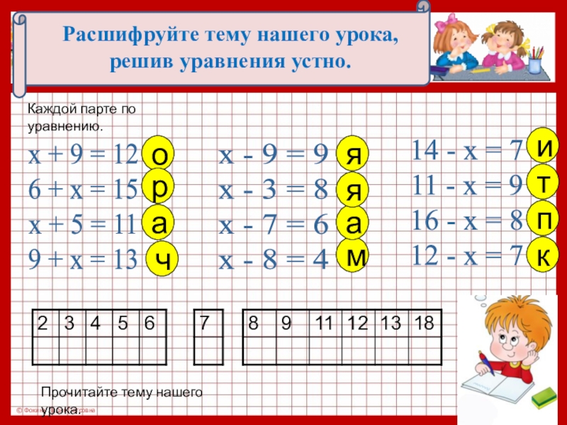 Каждой парте по уравнению.