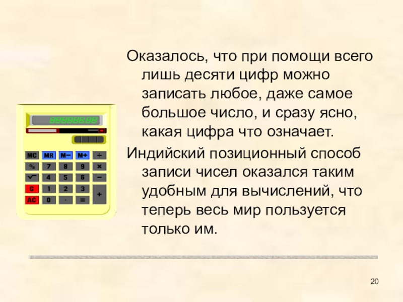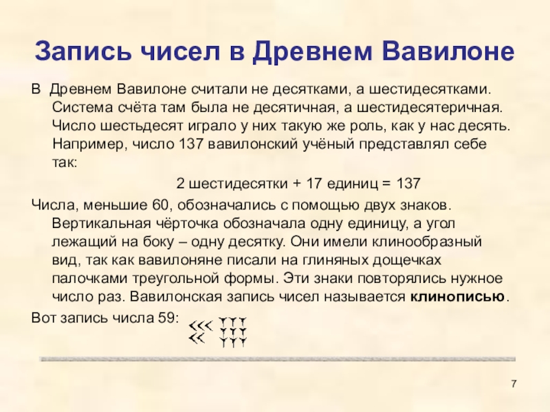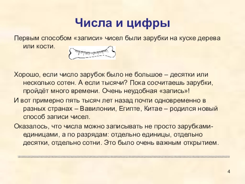В позиционных системах счисления один и тот же числовой один и тот же числовой знак один и тот же числовой знак (цифра один и тот же числовой знак (цифра) в записи числа имеет различные значения в зависимости от того места (разряда), где он расположен.