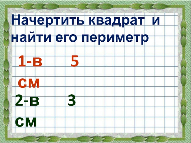 Начертить квадрат и найти его периметр1-в    5 см2-в    3 см
