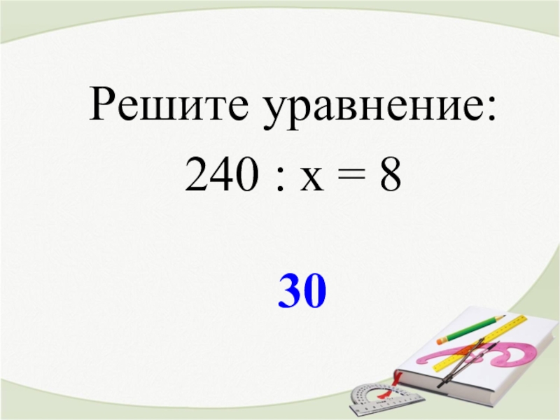 30Решите уравнение:240 : х = 8