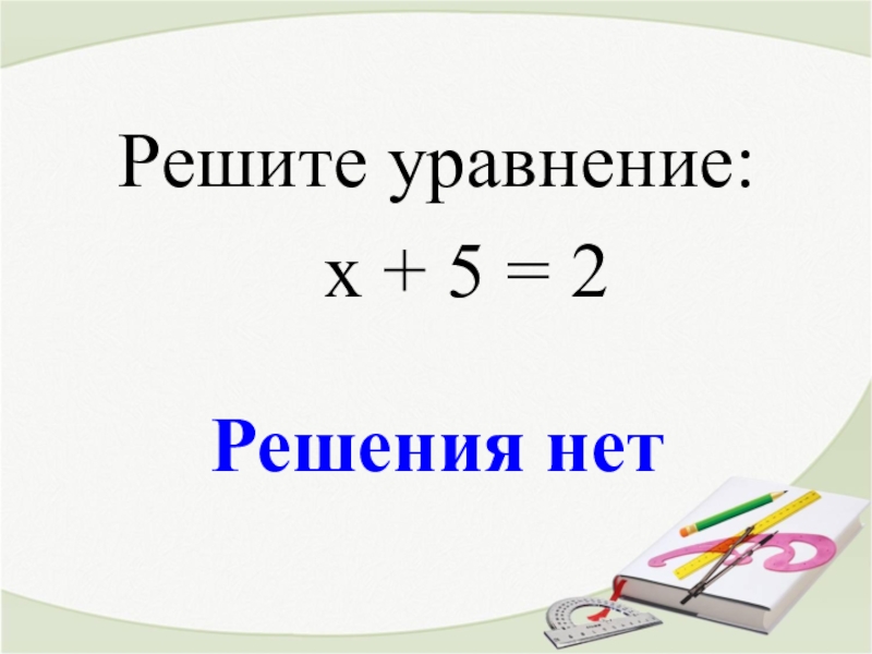 Решения нетРешите уравнение:  х + 5 = 2
