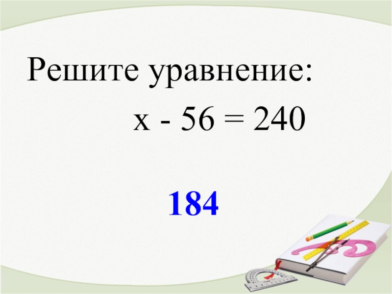 184Решите уравнение:      х - 56 = 240