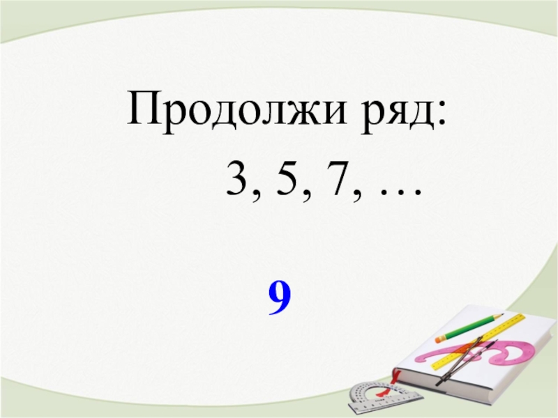 9Продолжи ряд:    3, 5, 7, …