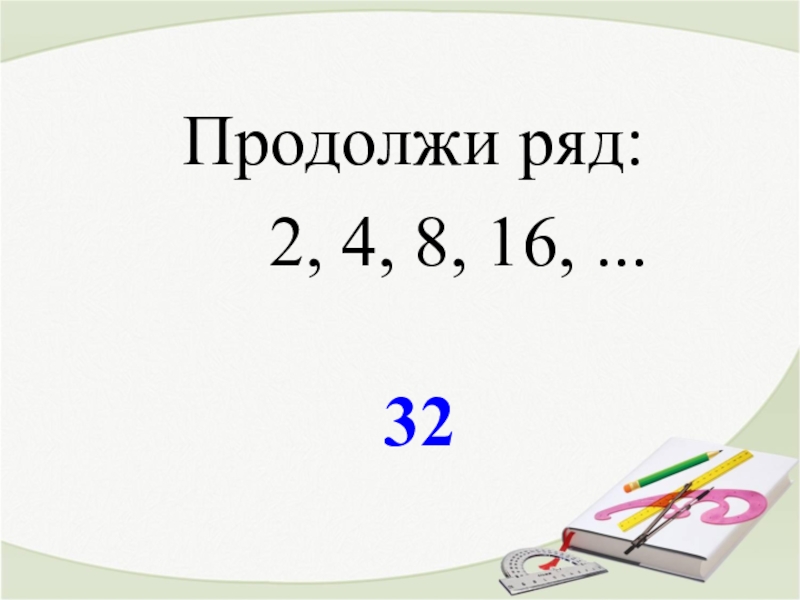 32Продолжи ряд:   2, 4, 8, 16, ...
