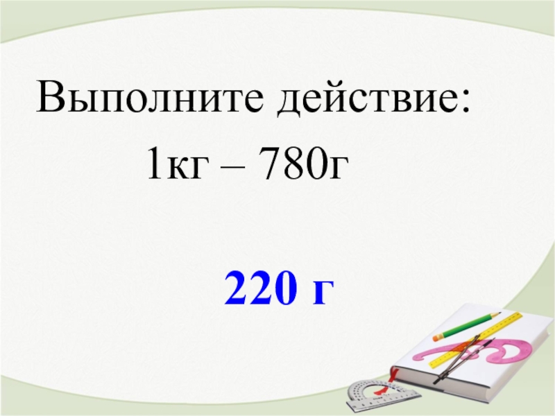 220 гВыполните действие:     1кг – 780г