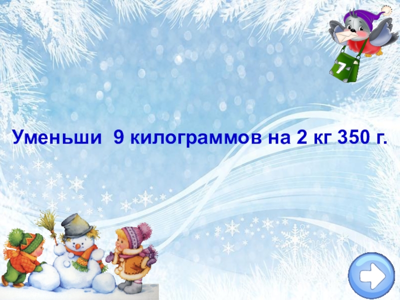 Слайд 8Уменьши 9 килограммов на 2 кг 350 г.