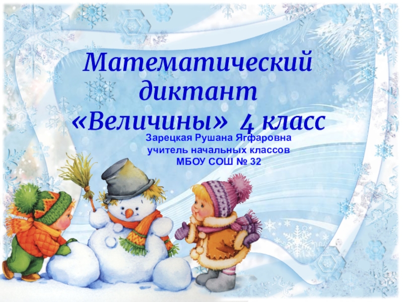 Математический диктант «Величины» 4 классЗарецкая Рушана Ягфаровнаучитель начальных классовМБОУ СОШ № 32