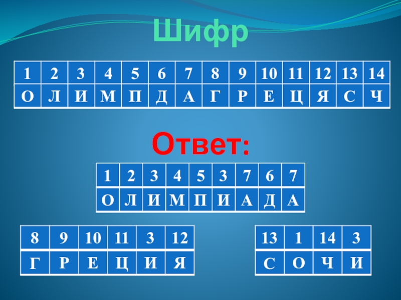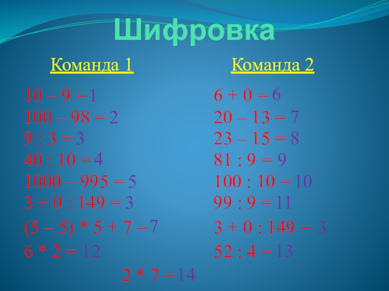 ШифровкаКоманда 1Команда 21273543216789101131314