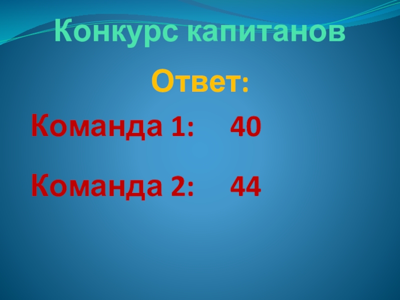Конкурс капитановОтвет:Команда 1:		40Команда 2:		44