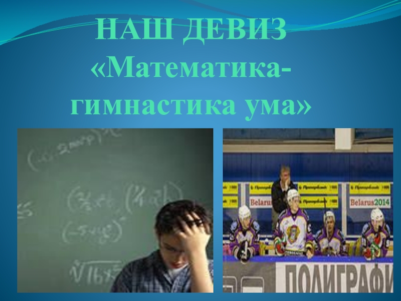 Слайд 3 НАШ ДЕВИЗ «Математика-гимнастика ума»