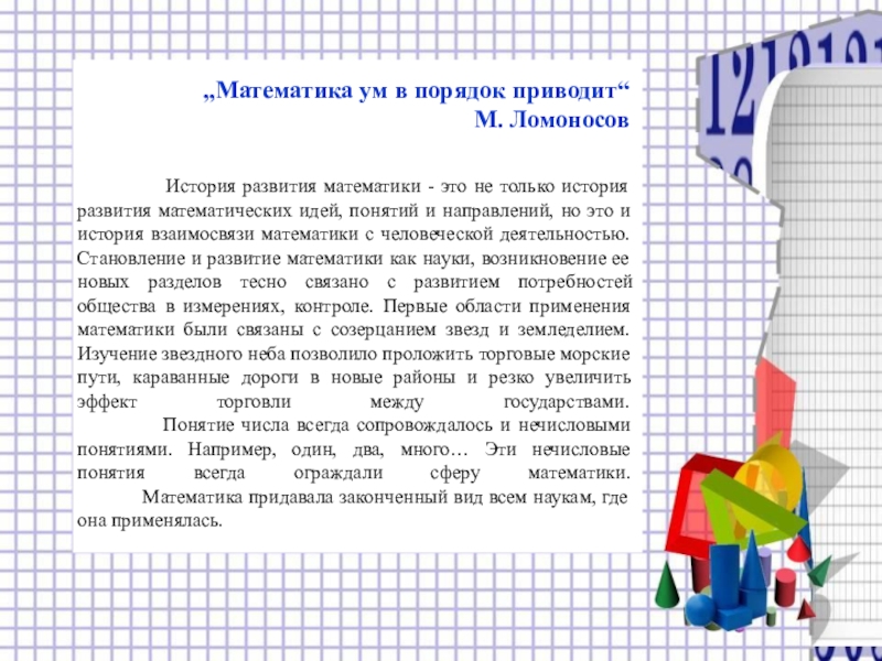 Слайд 1Из истории развития МАТЕМАТИКИ
