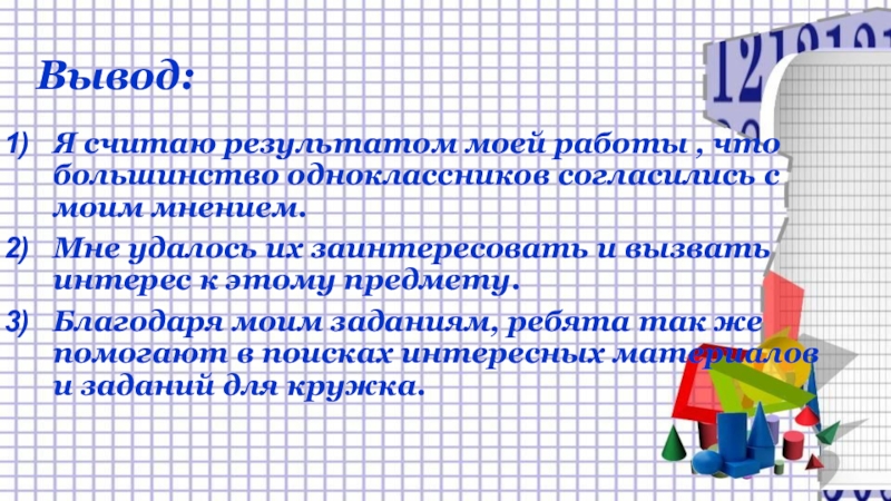 Это сайт презентаций, где можно хранить и обмениваться своими презентациями, докладами, проектами, шаблонами в формате PowerPoint с другими пользователями. Мы помогаем школьникам, студентам, учителям, преподавателям хранить и обмениваться учебными материалами.
