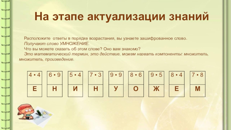 Получают слово УМНОЖЕНИЕ.