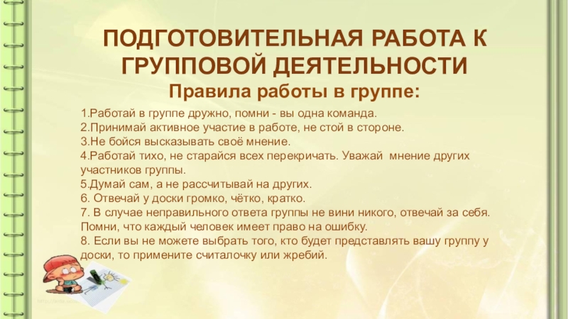 Подготовительная работа к Групповой деятельности