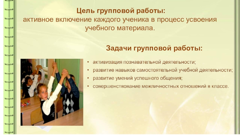 Задачи групповой работы: