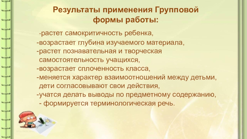 Слайд 5Результаты применения Групповой формы работы: