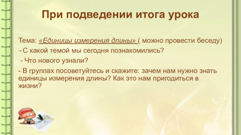 - В группах посоветуйтесь и скажите: зачем нам нужно знать единицы измерения длины? Как это нам пригодиться в жизни?