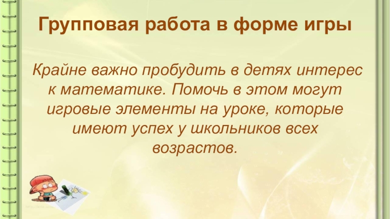 к математике. Помочь в этом могут игровые элементы на уроке, которые имеют успех у школьников всех возрастов.