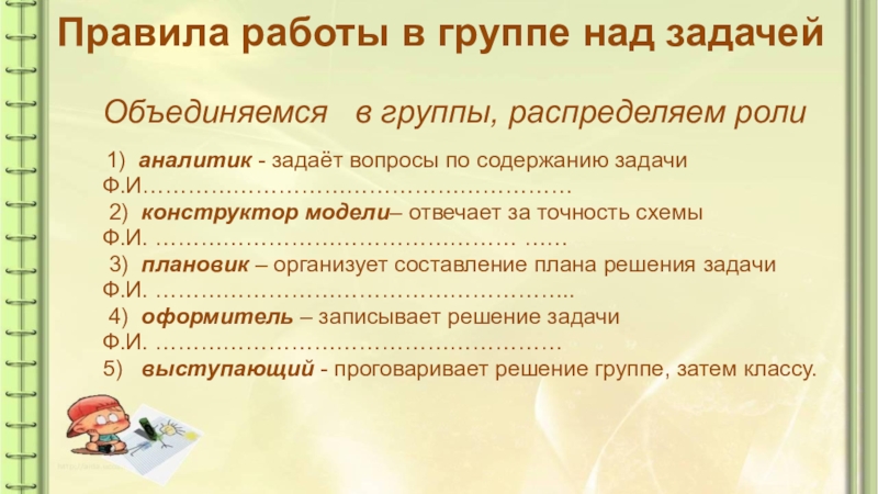 Слайд 20Правила работы в группе над задачей