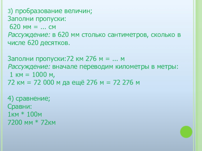 Таким образом деятельность измерения в школе очень быстро сменяется деятельностью прео6разования численных значений результатов измерения.