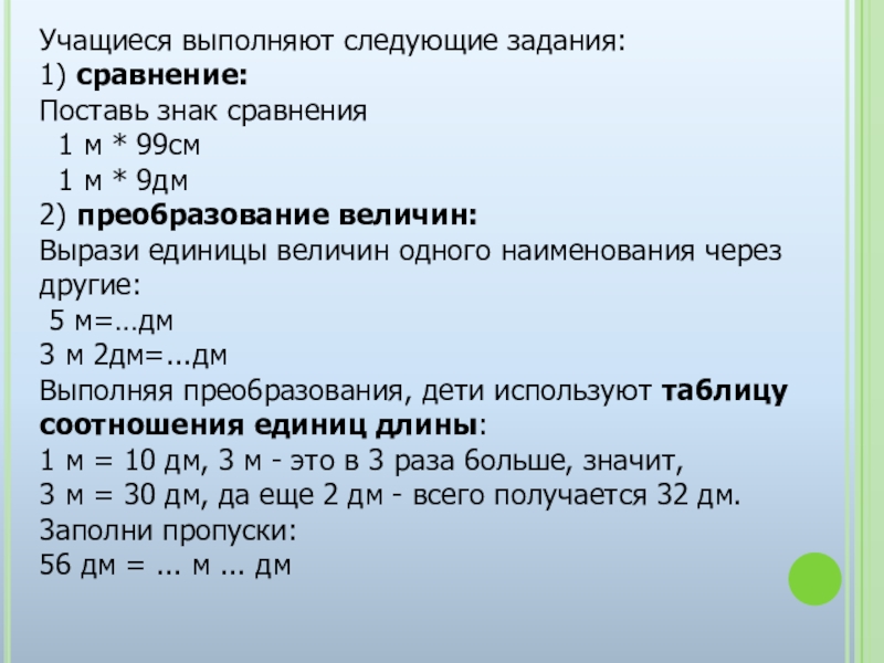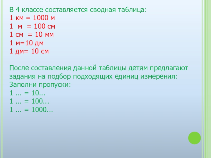Выполняя прео6разования, дети используют та6лицу соотношения единиц длины: