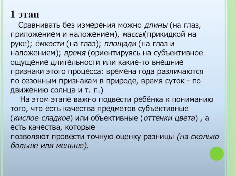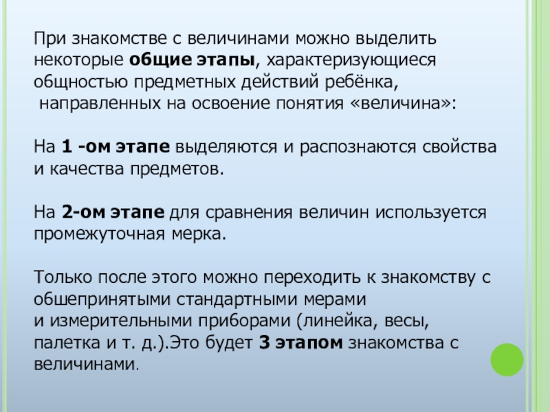 Слайд 5При знакомстве с величинами можно выделить некоторые о6щие этапы, характеризующиеся