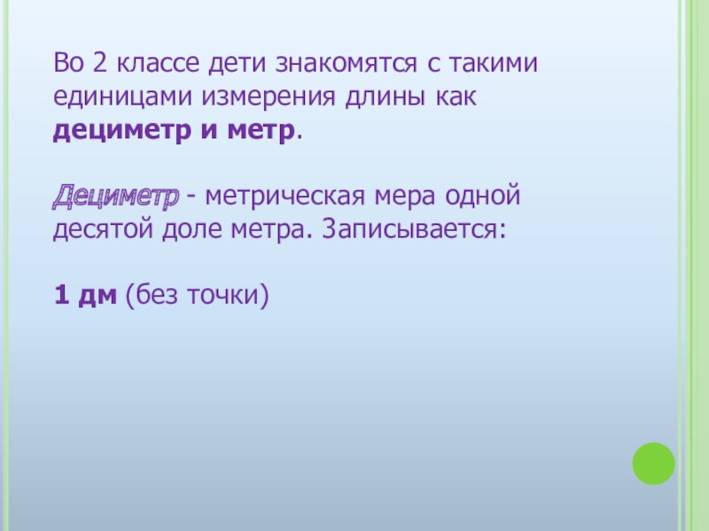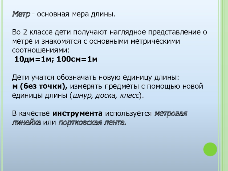 Слайд 14Во 2 классе дети знакомятся с такими единицами измерения длины как