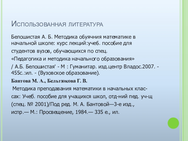 Белошистая А. Б. Методика о6уячния математике в начальной школе: курс