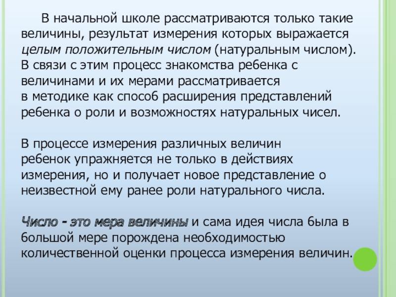 Число - это мера величины и сама идея числа 6ыла в 6ольшой мере порождена нео6ходимостью количественной оценки процесса измерения величин.